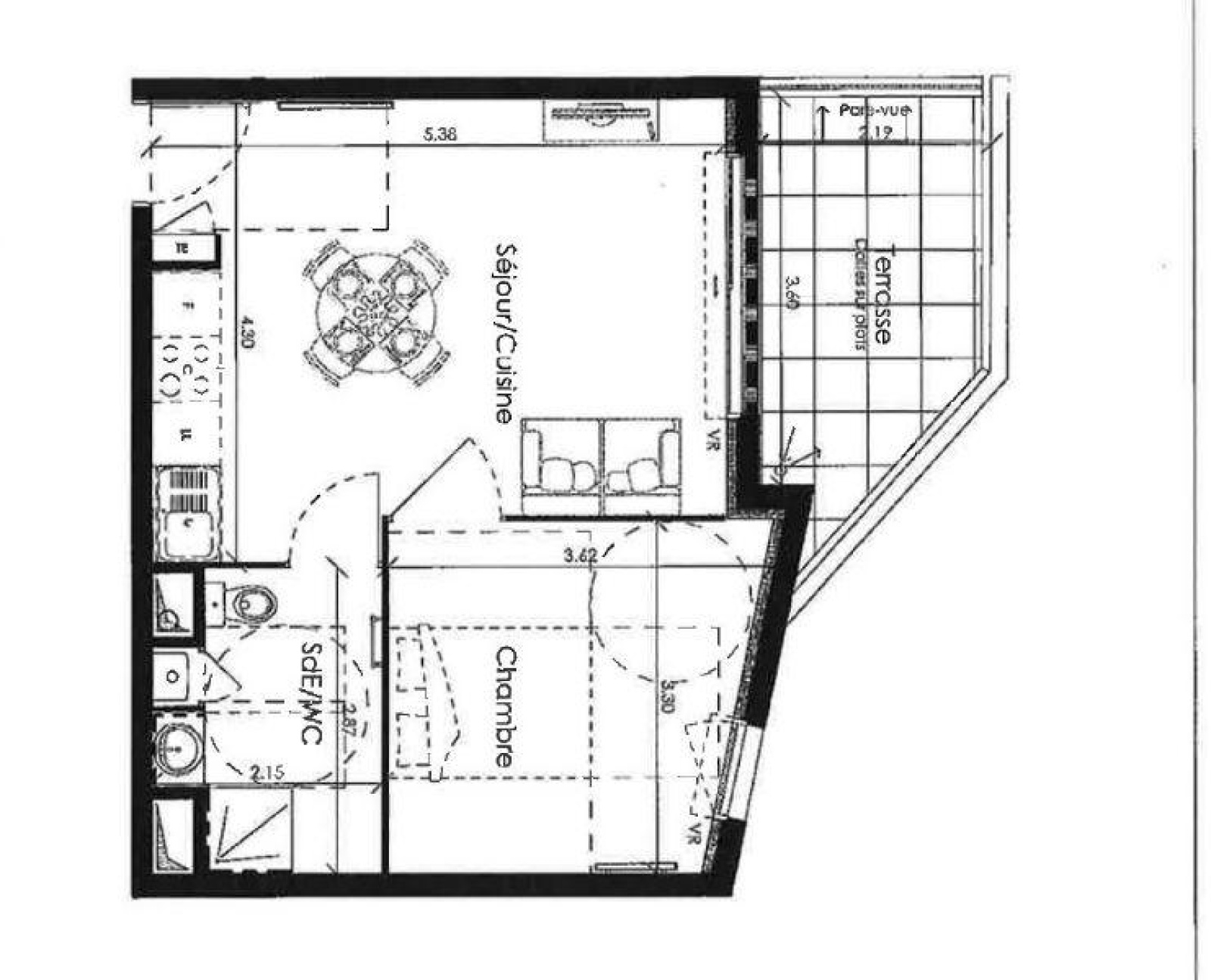 Superficie habitable : 38m²