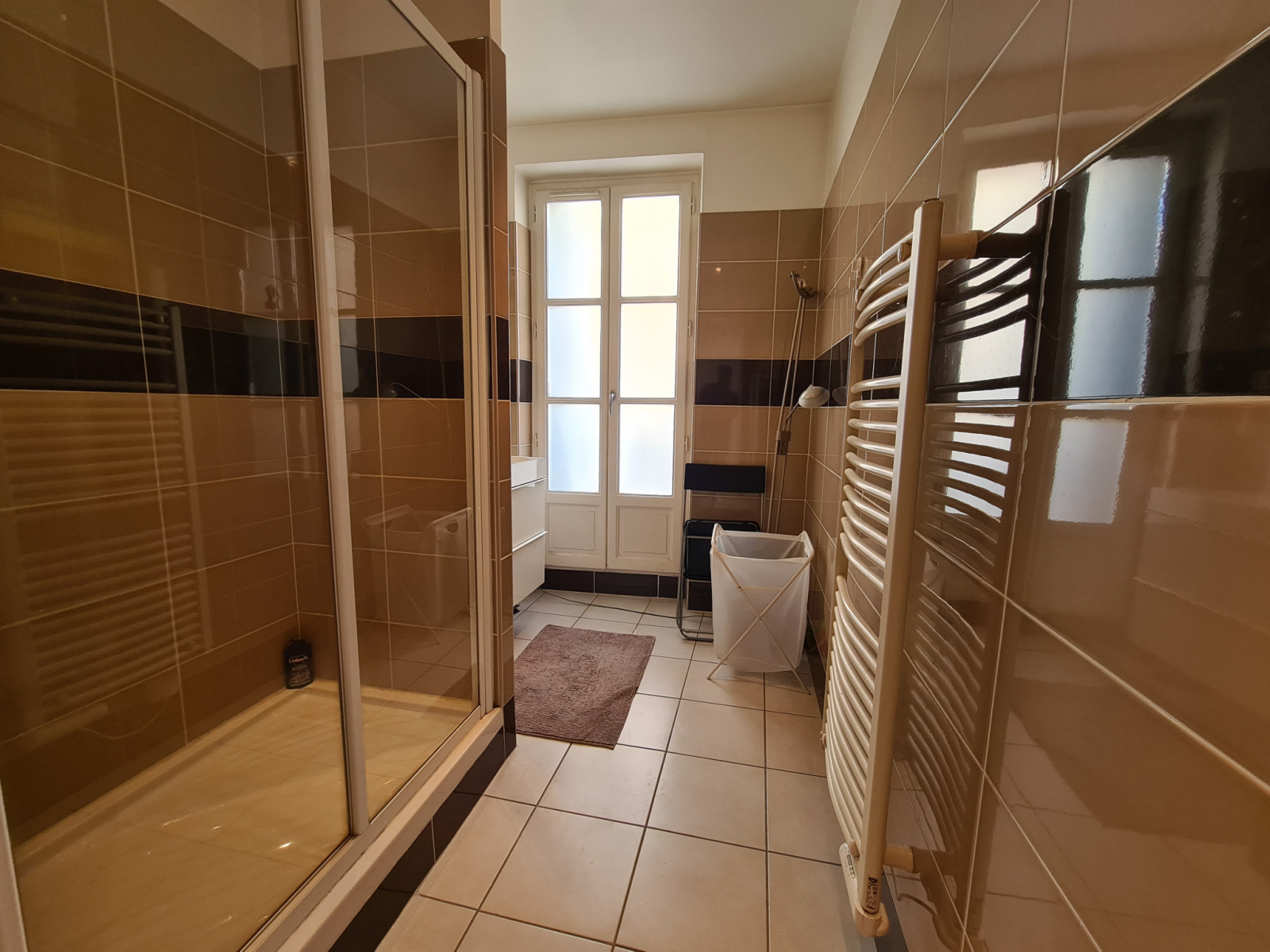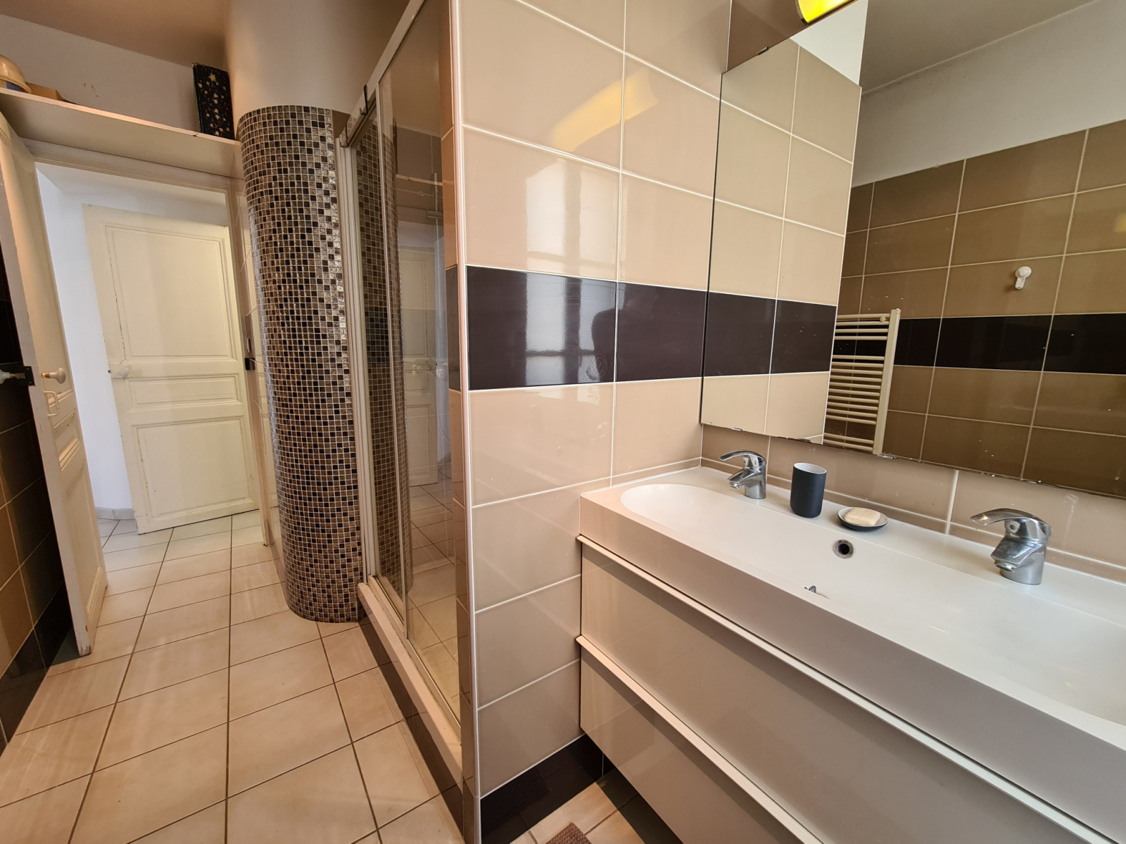 La salle d’eau est moderne et spacieuse.